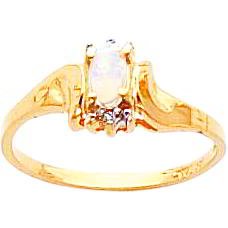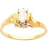 14K Gold 0.01 cttw Opal & Clear Diamond Birthstone Right Hand Ring
