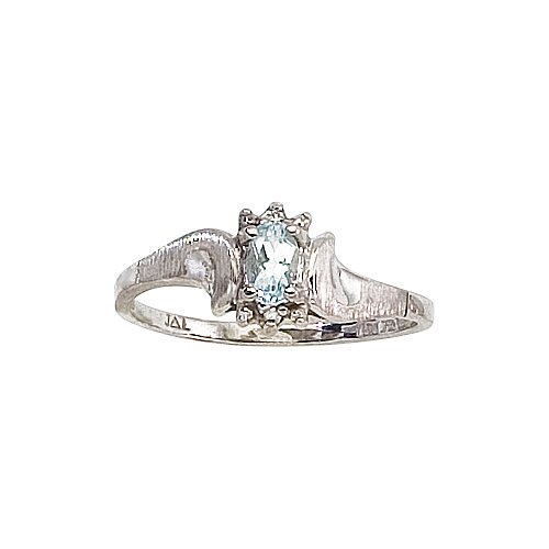 14K White Gold 0.01 ct. Diamond and 5 x 3 MM Oval Shaped Aquamarine Ring Overviews