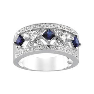 14k Wht Gold Anniv. Band Ring Sapphire Diamond Sz 7 - 1/4ct - in 14k White Gold - - JewelryWeb Style: TLR134682W - FREE gift-ready jewelry box