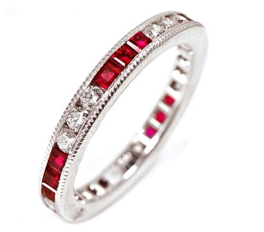Square Ruby and Diamond Channel Set Full Circle Platinum Band with Fine Millgrain Edge, Ring Size 5.75 Ctw 1.70 Overviews