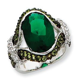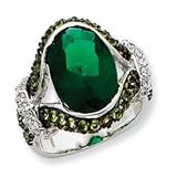 Sterling Silver Green Glass and Clear Cubic Zirconia Ring - Size 7 - in Sterling Silver - - - Product Attributes: - Black rhodium -- CZ -- Open back -- Polished - - JewelryWeb Style: QTR119311SS - FREE gift-ready jewelry box