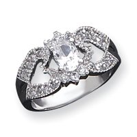 Sterling Silver Vintage Style Cubic Zirconia Ring - Size 6 - in Sterling Silver - Product Attributes: - Polished - JewelryWeb Style: QTR123525SS - FREE gift-ready jewelry box
