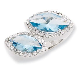 Sterling Silver Blue and Clear Cubic Zirconia Ring - Size 7 - in Sterling Silver - - - Product Attributes: - CZ -- Open back -- Polished - - JewelryWeb Style: QTR115971SS - FREE gift-ready jewelry box