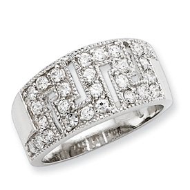 Sterling Silver Cubic Zirconia Greek Key Ring - Size 6 - in Sterling Silver - - - Product Attributes: - Polished - - JewelryWeb Style: QTR117149SS - FREE gift-ready jewelry box