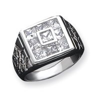 Sterling Silver Mens Cubic Zirconia Ring - Size 11 - in Sterling Silver - - Product Attributes: - CZ -- Open back -- Polished -- Solid - - JewelryWeb Style: QTR79476SS - FREE gift-ready jewelry box