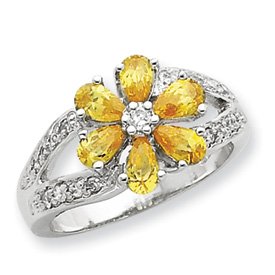 Sterling Silver Yellow Flower Cubic Zirconia Ring - Size 6 - in Sterling Silver - Product Attributes: - CZ - Polished - JewelryWeb Style: QTR123733SS - FREE gift-ready jewelry box