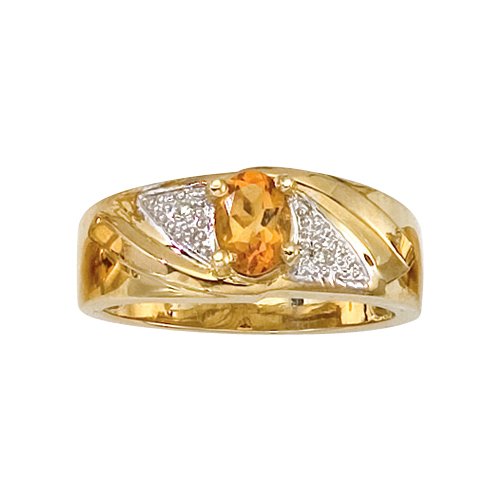 Spectacular 0.01 ct. (Tw.) diamond ring with diamonds on the sides and a citrine in the center. Casted in 10k yellow/white gold, this citrine ring adds a lot of style to a special occasion.