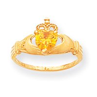 14k Cubic Zirconia November Birthstone Claddagh Heart Ring - in 14k Yellow Gold - Product Attributes: - Synthetic - Polished - CZ - JewelryWeb Style: QTR38963Y - FREE gift-ready jewelry box