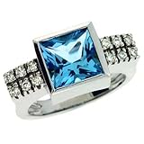 14k White Blue Topaz and Diamond Ring - Size 7.0 Overviews