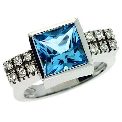 14k White Blue Topaz and Diamond Ring - Size 7.0 - .21 Carat Diamond Weight 2.85 Carat Gemstone Weight in 14k White Gold - (SI2 clarity, G/H color) - JewelryWeb Style: KSR18234WH7 - FREE gift-ready jewelry box