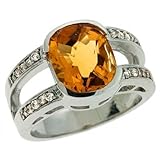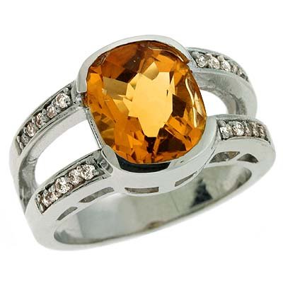 14k White Citrine and Diamond Ring - Size 7.0 - .18 Carat Diamond Weight 3.40 Carat Gemstone Weight in 14k White Gold - (SI2 clarity, G/H color) - JewelryWeb Style: KSR18186WH7 - FREE gift-ready jewelry box