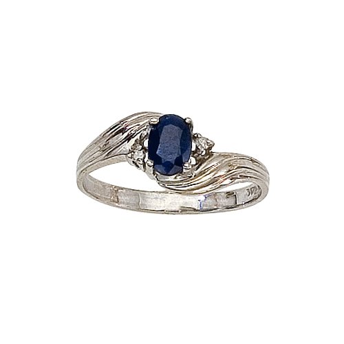 14K White Gold 0.03 ct. Diamond and 6 x 4 MM Oval Shaped Sapphire Ring Overviews