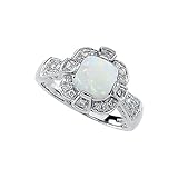 14K White Gold 1/5 ct. Diamond and 7/8 ct. Cushion Cut Opal Cabochon Ring Overviews