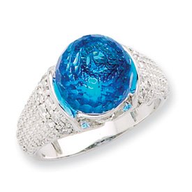 Sterling Silver Blue and Clear Cubic Zirconia Ring - Size 8 - in Sterling Silver - Product Attributes: - CZ - Open back - Polished - JewelryWeb Style: QTR115980SS - FREE gift-ready jewelry box