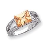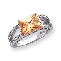 Sterling Silver Champagne and Clear Cubic Zirconia Ring - Size 7 - in Sterling Silver - Product Attributes: - CZ - Solid - JewelryWeb Style: QTR34568SS - FREE gift-ready jewelry box