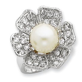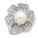 Sterling Silver Synthetic Pearl and Cubic Zirconia Ring - Size 8 - in Sterling Silver - Product Attributes: - CZ - Polished - Simulated pearl - JewelryWeb Style: QTR123319SS - FREE gift-ready jewelry box