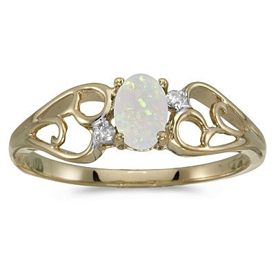 10K Yellow/White Gold 0.02 ct. Diamond and 6 x 4 MM Oval Shaped Opal Ring Overviews