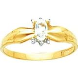 14K Gold 0.01 cttw White Topaz & Clear Diamond Birthstone Right Hand Ring