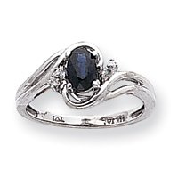 14k White Gold .05ct Diamond and Sapphire Birthstone Ring - .05 Carat Diamond Weight in 14k White Gold - Product Attributes: - Diamond - Genuine - Sapphire - Polished - JewelryWeb Style: QTR46445W - FREE gift-ready jewelry box