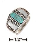 Sterling Silver Turquoise Mop Marcasite Dividers Dome Ring - Size 10.0 Overviews
