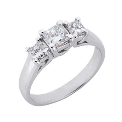 14k White 3 Stone 1 Ct Diamond Ring - Size 7.0 - 1.00 Carat Diamond Weight in 14k White Gold - (SI2 clarity, G/H color) - JewelryWeb Style: KSR18786WH7 - FREE gift-ready jewelry box