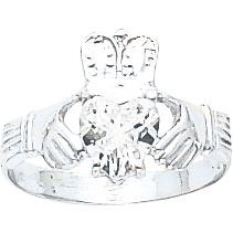 14K White Gold Cubic Zirconia April Birthstone Claddagh Ring