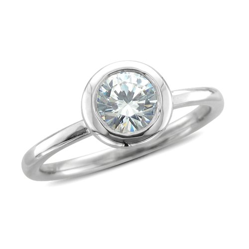 This gorgeous solitaire diamond engagement ring is inspired by today's hottest design trend. A sparkling natural round brilliant cut diamond is beautifully framed by 18k white gold bezel setting atop of lustrous band. It blends gorgeously of classic and modern styles. Simple, yet Bold. This engagement ring design is perfect for a bride with a strong sense of individuality and style. The statement made by a solitaire ring is all about the purity of love. This diamond ring will beautifully express your deepest love and care. The cable band is 2.2mm. This design is available in various diamond weights and metals.